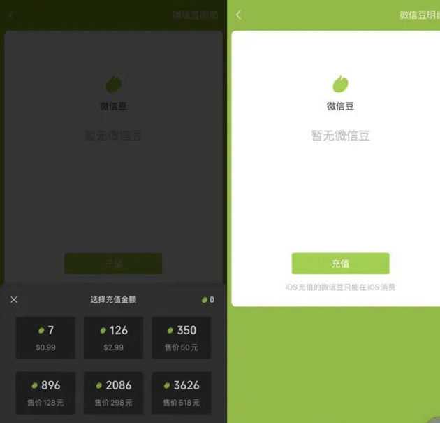 鉴于苹果应用内支付的抽成策略,iOS端7个微信豆1元,微信对打赏抽成的比例则为 50%。而没有抽成的Android平台,抽成分佣比例可能会少一些,大胆猜测Android端10个微信豆1元。