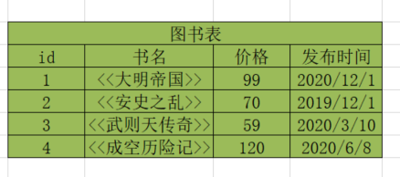 我想了想,首先,肯定有一个图书表,专门存放图书的信息,最起码是这样的。