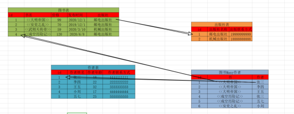 又想了想,书肯定是人写的,肯定要有作者,所以还需要一个作者表,应该是这样子的。