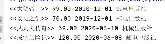 book_list = models.Book.objects.all() for book in book_list: print(book.title, book.price, book.PublishDate, book.publish)