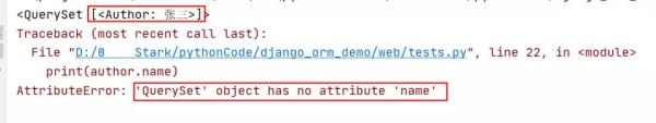 author = models.Author.objects.filter(name="张三") print(author) print(author.name)