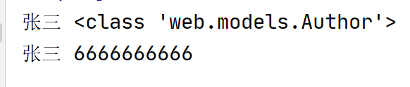 author = models.Author.objects.filter(name="张三").first() print(author,type(author)) print(author.name,author.phone)