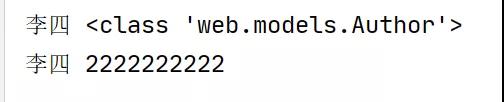 author = models.Author.objects.get(name="李四") print(author,type(author)) print(author.name,author.phone)