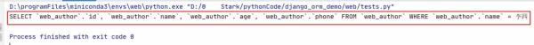 sql = models.Author.objects.filter(name="李四").query print(sql)