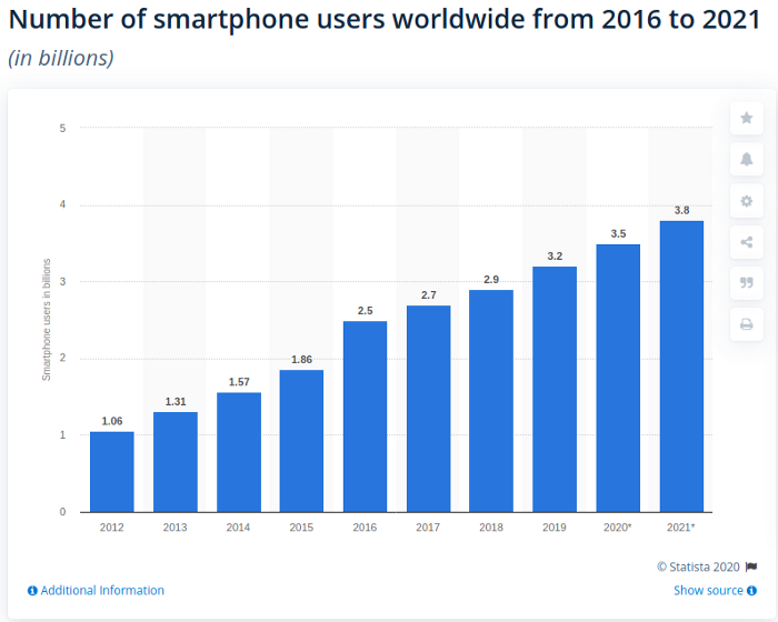 智能手机现在是我们日常生活的一部分。智能手机用户已经达到 35 亿,明年将达到 38 亿: