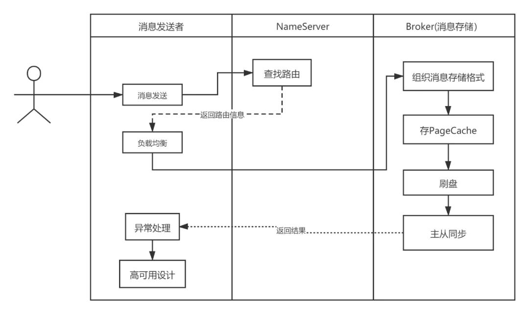 在搭建好本地开发环境后,切忌直接用Debug去跟踪消息发送的整体流程,因为这个流程实在是太长了,从比较粗粒度来看其流程如下图所示: