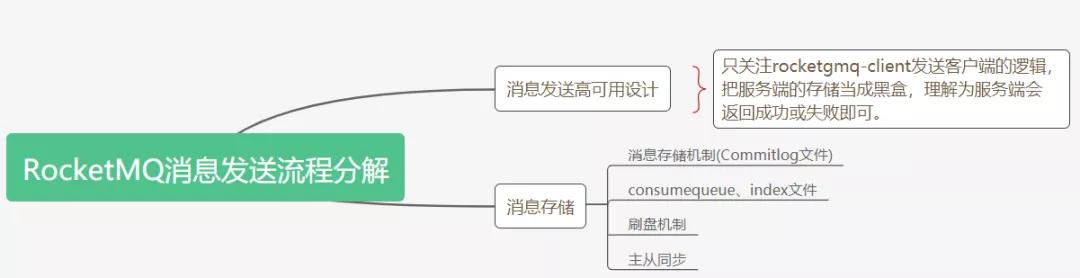 如果大家想一次性将上述流程的源码全部看一遍,几乎是不可能的。 因为消息发送高可用设计、消息存储、刷盘、同步等机制,每个点详细展开的工作都是海量的,我们没有这么多连续的时间,所以适当的拆分非常有必要。