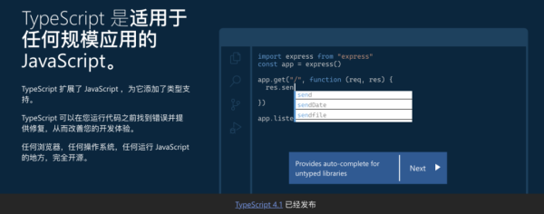 TypeScript 是适用于任何规模应用的 JavaScript。