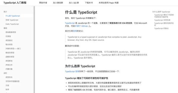 官网上有什么是 TypeScript,为什么要用 TypeScript ,和 api 相关的文档,而且还是一手的学习资料,无疑是最好的学习资料了。
