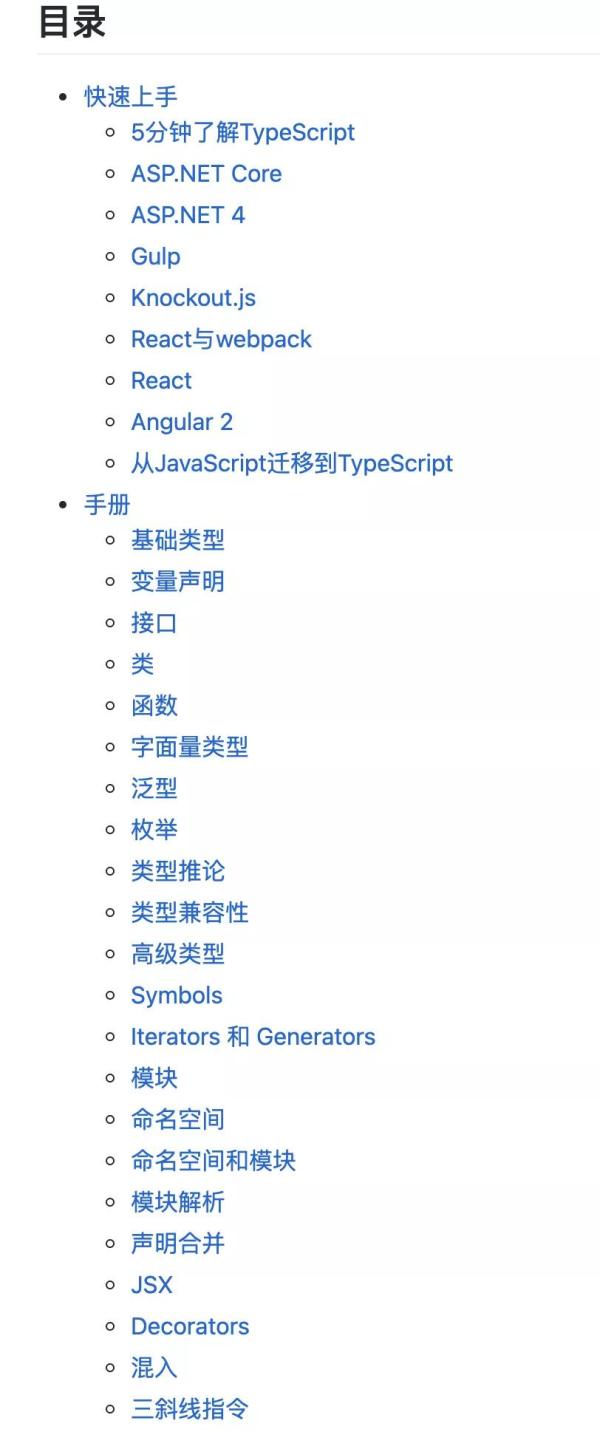 这个好像是 TypeScript 官网的中文翻译原文,猫哥不是很确定,不过是个学习 TS 的好仓库。