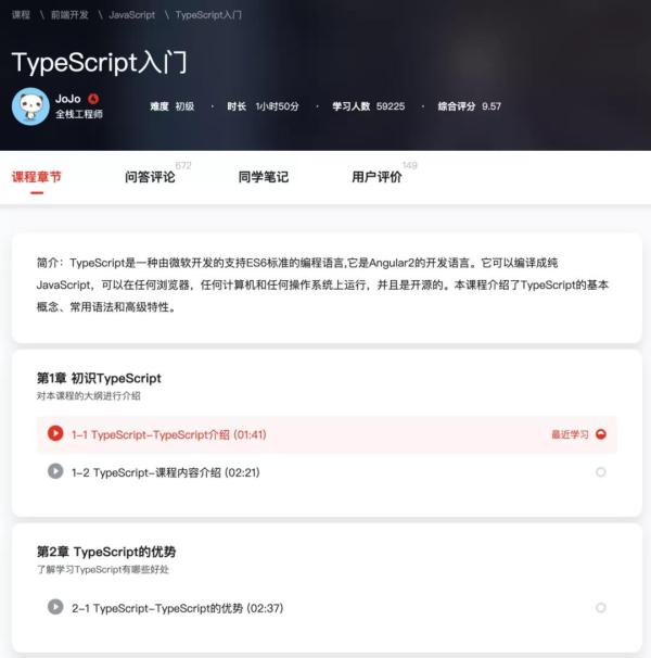 这个是个视频课程,介绍了 TypeScript 的基本概念、常用语法和高级特性。