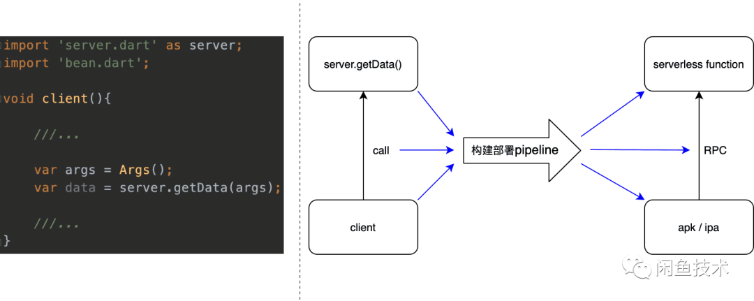Flutter 的跨端能力结合云原生的弹性部署,前后端的实现可以放到一起,它们之间的调用也变得简单自然,有理由相信这会是一个高效的开发方式。闲鱼已经做了前期的探索,并在业务中尝试落地。