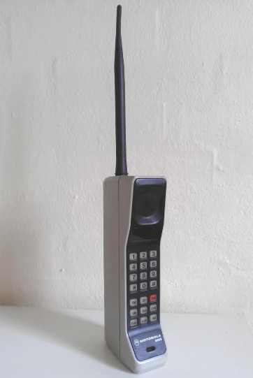 这款手机被命名为DynaTAC(Dynamic Adaptive Total Area Coverage),高度22cm,重量1.28kg,可以持续通话20分钟,拥有一根醒目的天线。