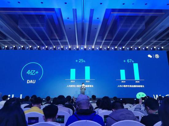 新浪科技讯 1月19日上午消息,今日在2021微信公开课上,公开课讲师momo表示,2020年小程序日活4亿,人均使用小程序个数健康同比增长25%,人均小程序交易金额同比增长67%。
