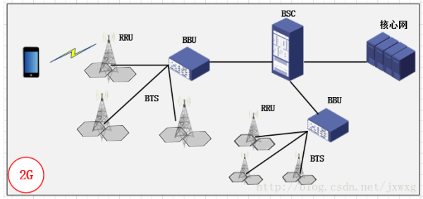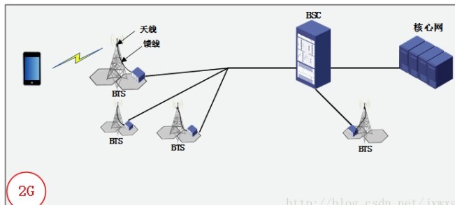 2G通信系统采用3级网络架构,即:BTS-BSC-核心网。2G核心网同时包含CS域和PS域。