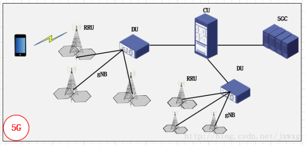 为了进一步提高5G移动通信系统的灵活性,5G采用3级的网络架构,级DU-CU-核心网(5GC)。DU和CU共同组成gNB,每个CU可以连接1个或多个DU。CU和DU之间存在多种功能分割方案,可以适配不同的通信场景和不同的通信需求。