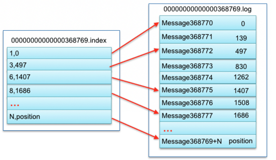 每个 partition 相当于一个巨型文件→多个大小相等 segment 数据文件中