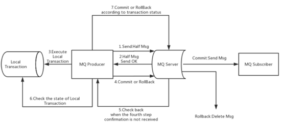 解决方案`* 先发送半消息(Half Msg,类似 Prepare 操作),不会投递给消费者