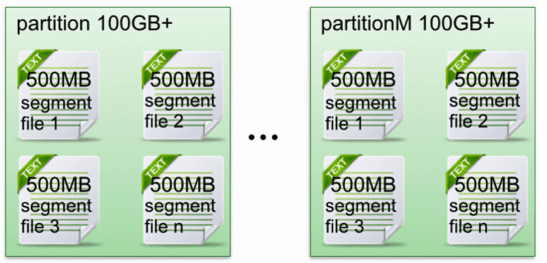 每个 partition 相当于一个巨型文件→多个大小相等 segment 数据文件中