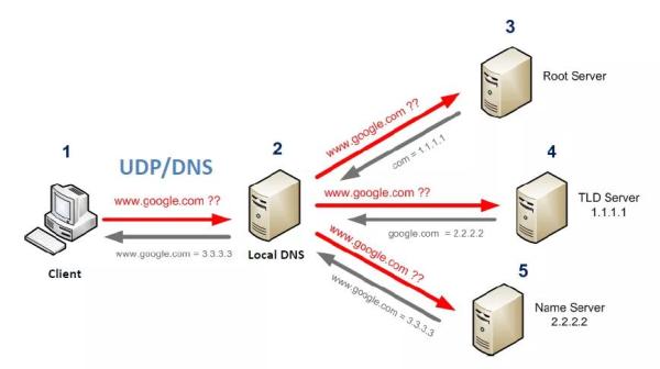一般DNS解析流程是用户走localdns,通过运营商提供的递归DNS解析,通常的DNS劫持就发生在这一层。