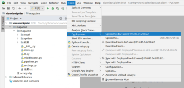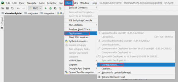 打开pycharm,点击Tools ---> Deployment ---> configuration