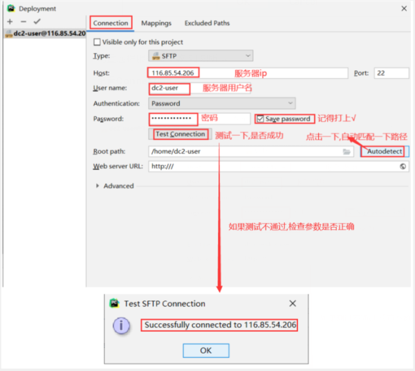 配置远程服务器参数,如图所示