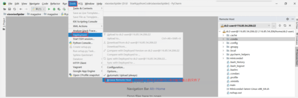 在pycharm上查看服务器上文件Tools --> deployment --> Browse Remote Host