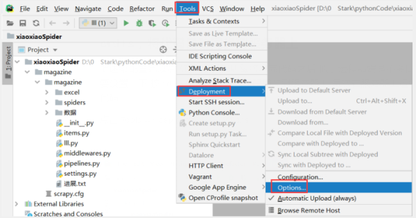 点击Tools --> deployment -->Options
