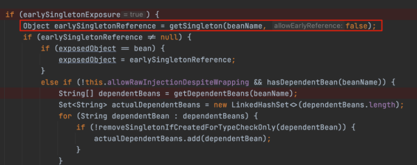 Object earlySingletonReference = getSingleton(beanName, false);