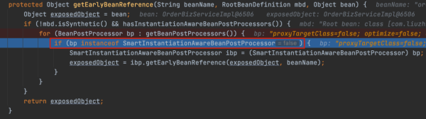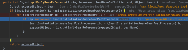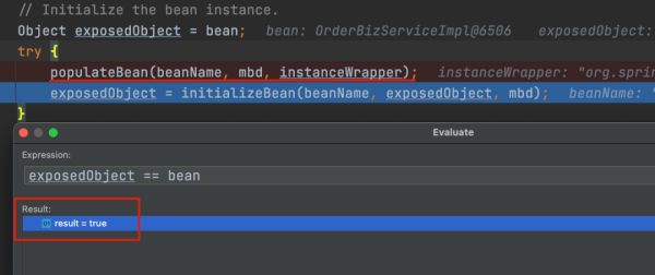 开始往上面反推 exposedObject == bean 是这一块出了问题。