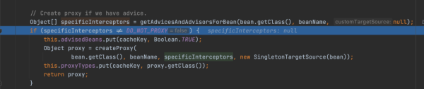 而此时执行 getEarlyBeanReference 先判断 InfrastructureAdvisorAutoProxyCreator true 调用 wrapIfNecessary 判断是否生成一个代理对象,这里并没有生成代理对象。