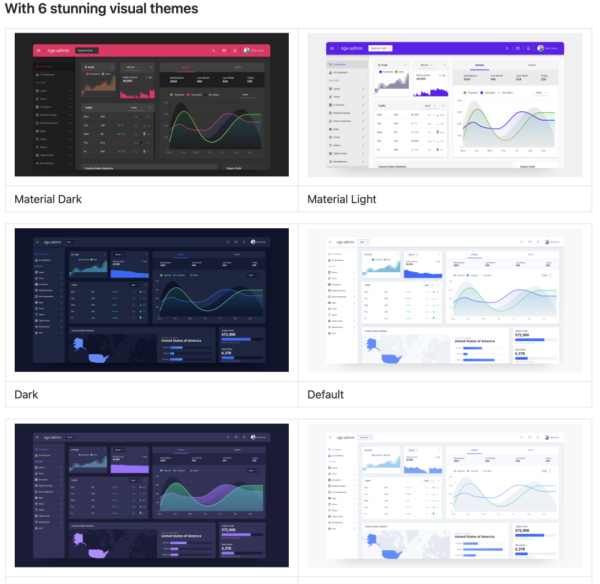 基于Angular 10+ 的可定制管理仪表板模,还拥有 6 个惊人的视觉主题。