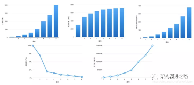 事实表明,随着软件复杂度的上升,工程师人数随之增加,但是代码量到达一定量之后涨幅呈现缓慢。但是代码维护成本却呈指数级上升,同时工程师的生产效率也会随之降低,需求变更维护成本增大。