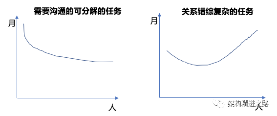 错综复杂的关系下,沟通交流的工作量非常大,消耗掉任务分解所节省下来的时间,从而,增加人手,实际上延长了而不是缩短了进度。