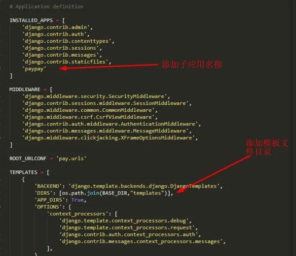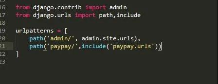 看到输出的结果表明这个子应用已经启动并返回了结果。我们也可以不用经过子应用直接在创建的项目根目录下运行启动Django应用,首先在pay目录下新建一个view.py文件,然后将其添加到该目录下的urls.py文件中,如下: