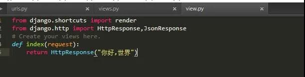 然后再在子应用中创建一个urls.py文件,当然你也可以直接将一些视图函数写在项目中的urls.py文件中。最后我们编写视图函数并把视图函数添加到urls.py文件中,如图: