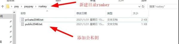将这三个文件都保存在rsakey这个文件夹中。现在准备工作都做好了,下面开始编写支付宝支付接口。