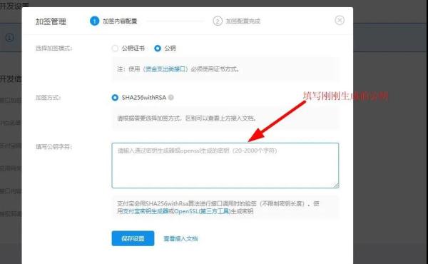验证好了之后填写刚刚生成的应用公钥,如图: