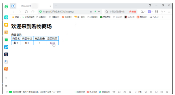 可以看到我们购买商品后链接成功跳转到支付界面。
