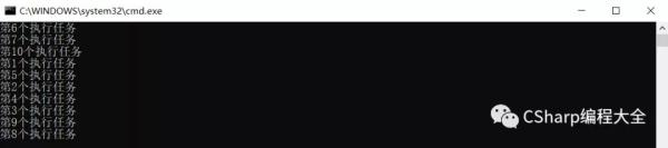 }上边的代码通过ThreadPool执行了10个任务,执行结果为: