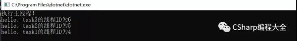 Console.WriteLine($"hello, task1的线程ID为{Thread.CurrentThread.ManagedThreadId}");