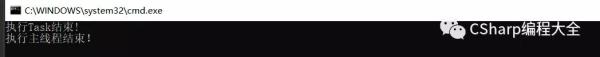 static void Main(string[] args) { Task task = new Task(() => { Thread.Sleep(100); Console.WriteLine("执行Task结束!"); }); //同步执行,task会阻塞主线程 task.RunSynchronously(); Console.WriteLine("执行主线程结束!"); Console.ReadKey(); }执行结果如下:
