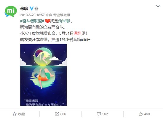 米聊官微发布的宣传微博