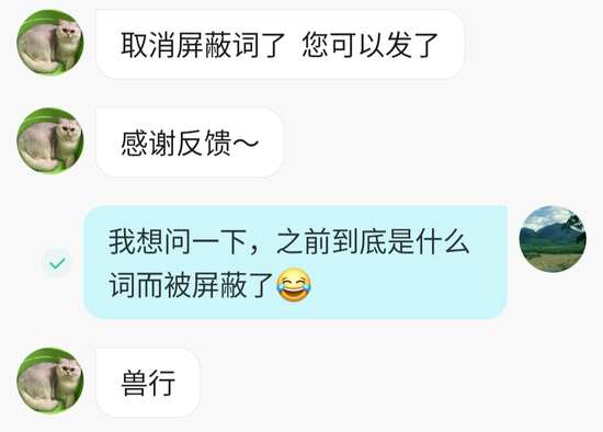 2019年1月时,陈隠看了《哥斯拉:怪兽行星》,简单地写了一条动态发布在微博、QQ、米聊上,唯独米聊的广播被驳回。他直接私信对接过的一个米聊工作人员,反馈了情况。工作人员审核后和他说清楚屏蔽词是“兽行”。他们立刻取消了这个屏蔽词,陈隠的广播才得以发出来。