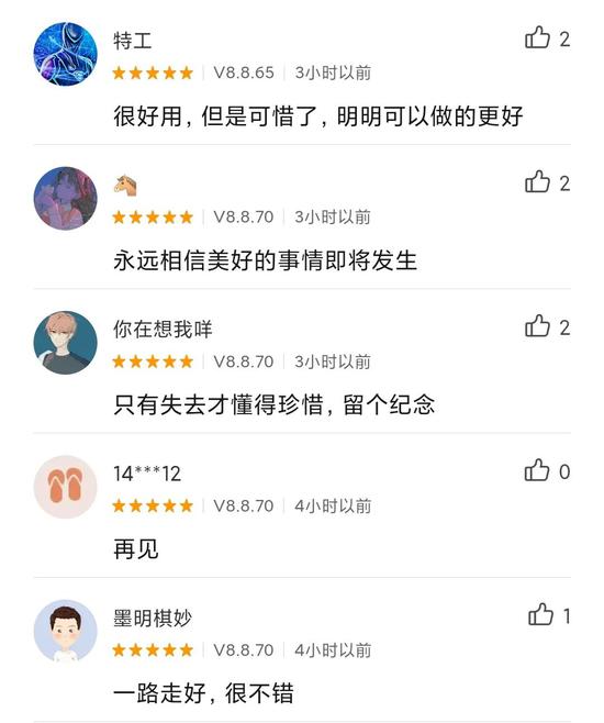 宣布将关停后,米聊在小米应用商店中的评论区