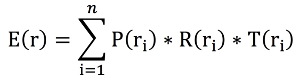 r 代表风险,风险期望会随着风险的数量 n 和每个风险的 P、R、T 下降而下降,简称 nPRT 公式。(注:如果要引用该公式请注明出处。)