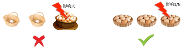 例如:分布式架构就是这个的典范,集中式一损俱损,分布式一损即 N 分之一损。