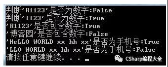 Console.WriteLine("判断'R1123'是否为数字:{0}", Regex.IsMatch("R1123", RegexStr));