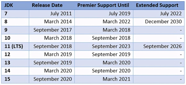 在下面,您可以查看每个JDK的暂定Oracle支持期限:
