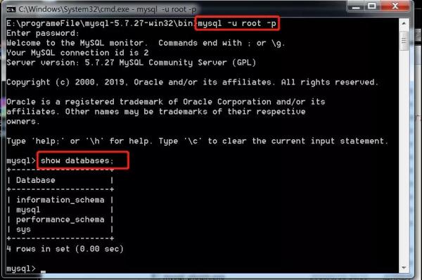 通过show DATABASES;命令查看自己下面有哪些数据库。